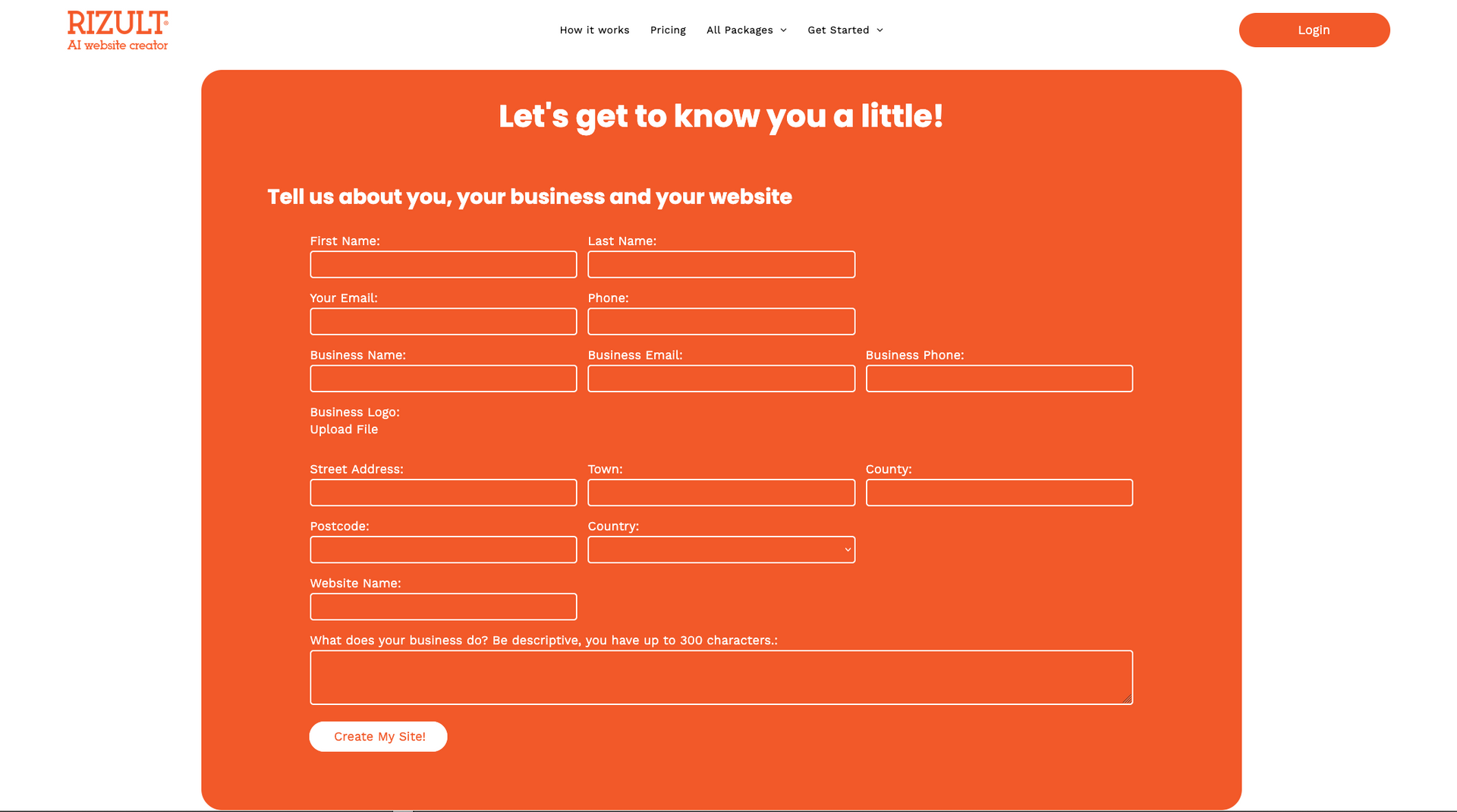 - Start by completing the step-by-step form. Unlike the AI version, this form lets you enter your own text, share more details about your business, and upload your logo along with any existing images and videos you’d like to include.